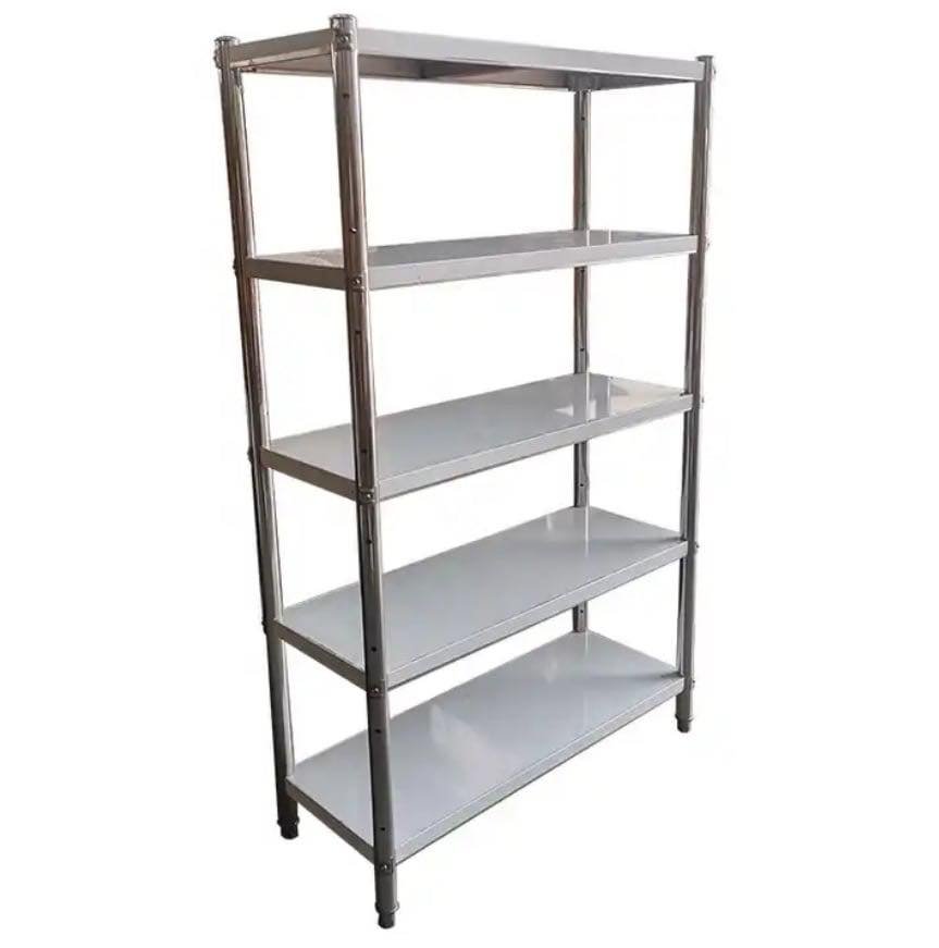 5 იარუსიანი, ზომა 100*175*80. მასალა უჟანგავი ფოლადი 18/10,304. გამოყენების სფერო: საწყობი, რესტორანი, სამზარეულოს ჭურჭელი, აბაზანა.